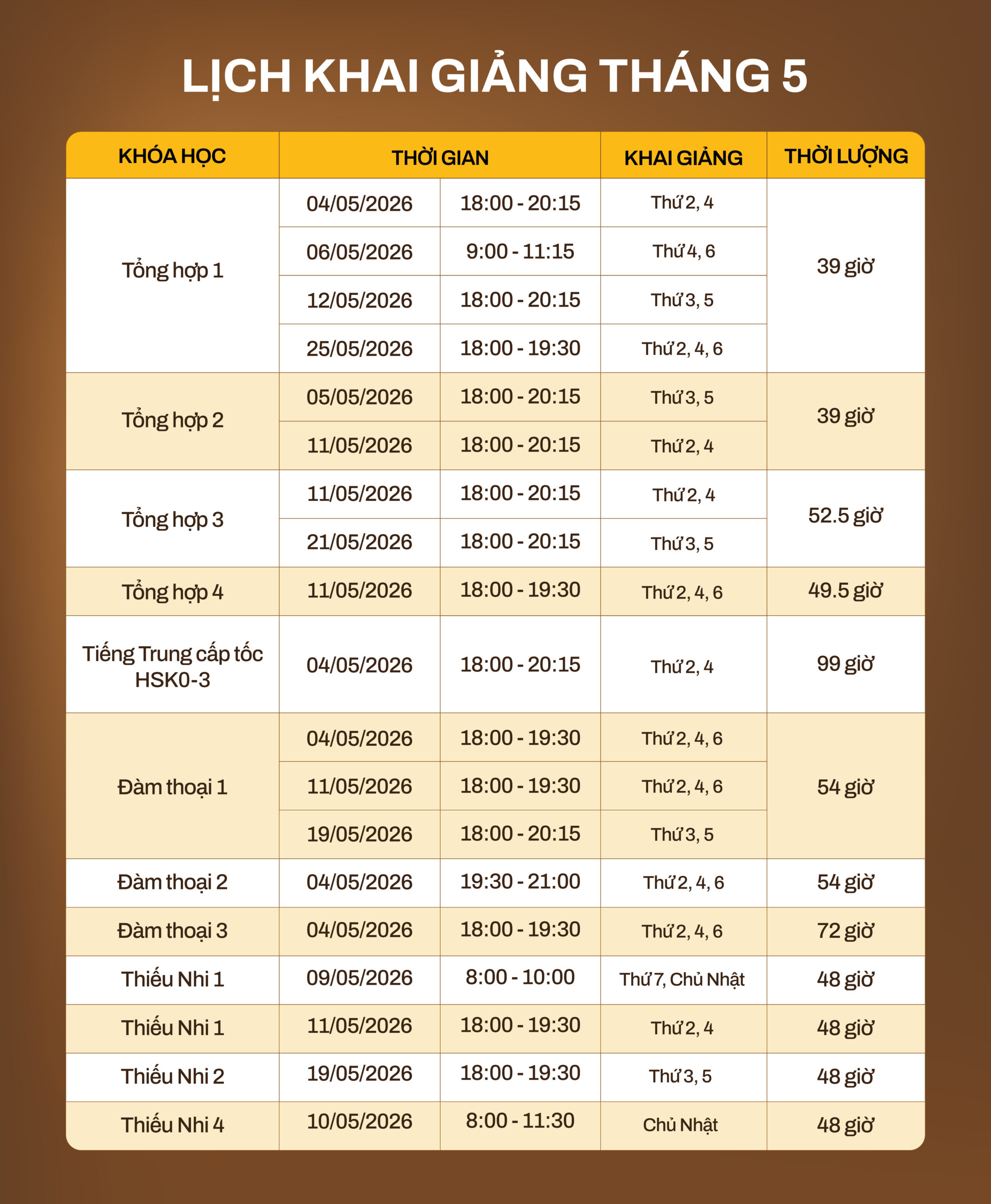 1 Lịch khai giảng khoá học tại WAN YU